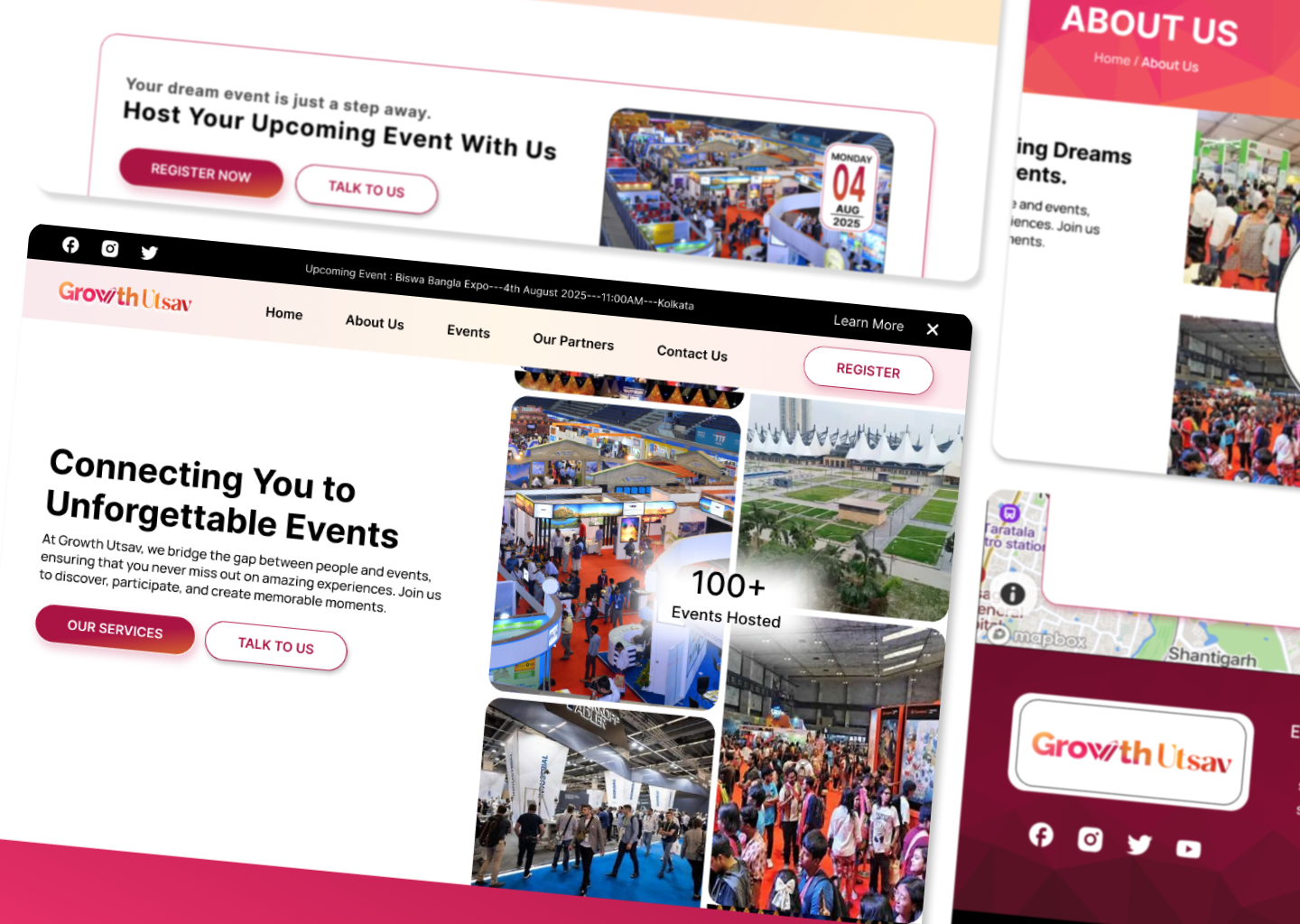 Growth Utsav is a large-scale exhibition platform designed to manage event information, exhibitor listings, schedules, and attendee registrations through a centralized digital system.